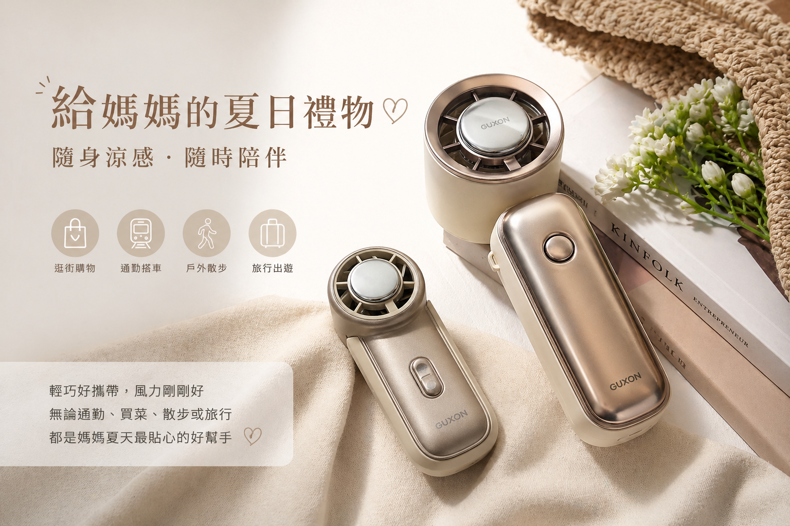 | 怕熱、通勤或經常外出 | 隨身風扇 | 夏季高頻使用,隨時降溫,實用又有生活質感 |