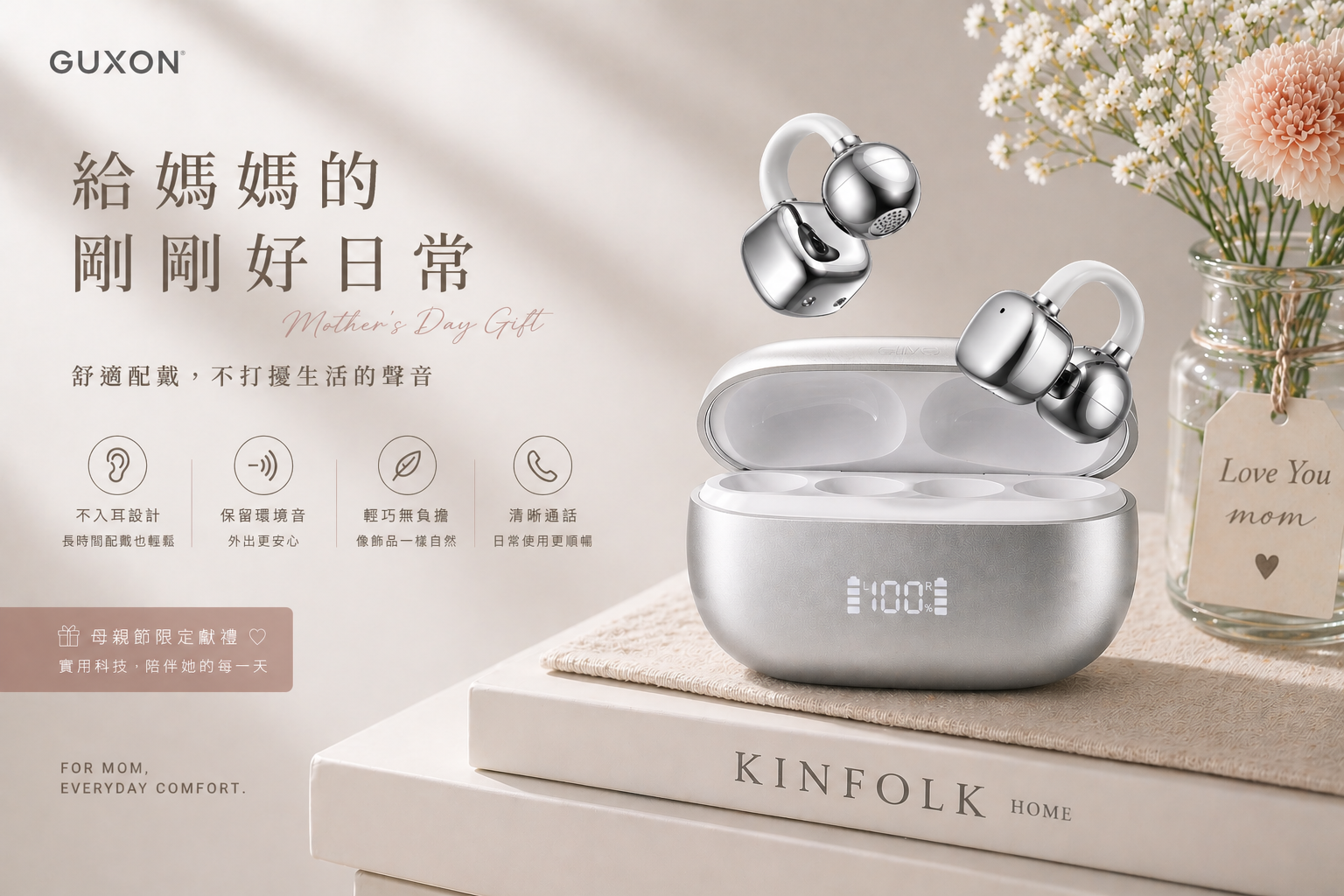 | 喜歡聽音樂、追劇或日常通話 | 舒適夾耳式耳機 | 不入耳設計更舒適,長時間配戴無負擔,外型時尚 |