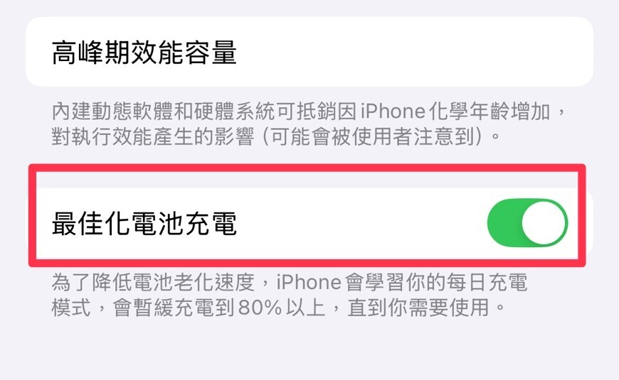 啟用「電池保護模式」 → iPhone 的「最佳化電池充電」、Samsung 的「保護電池模式」,都會主動限制充電速度,讓電池用得更久。