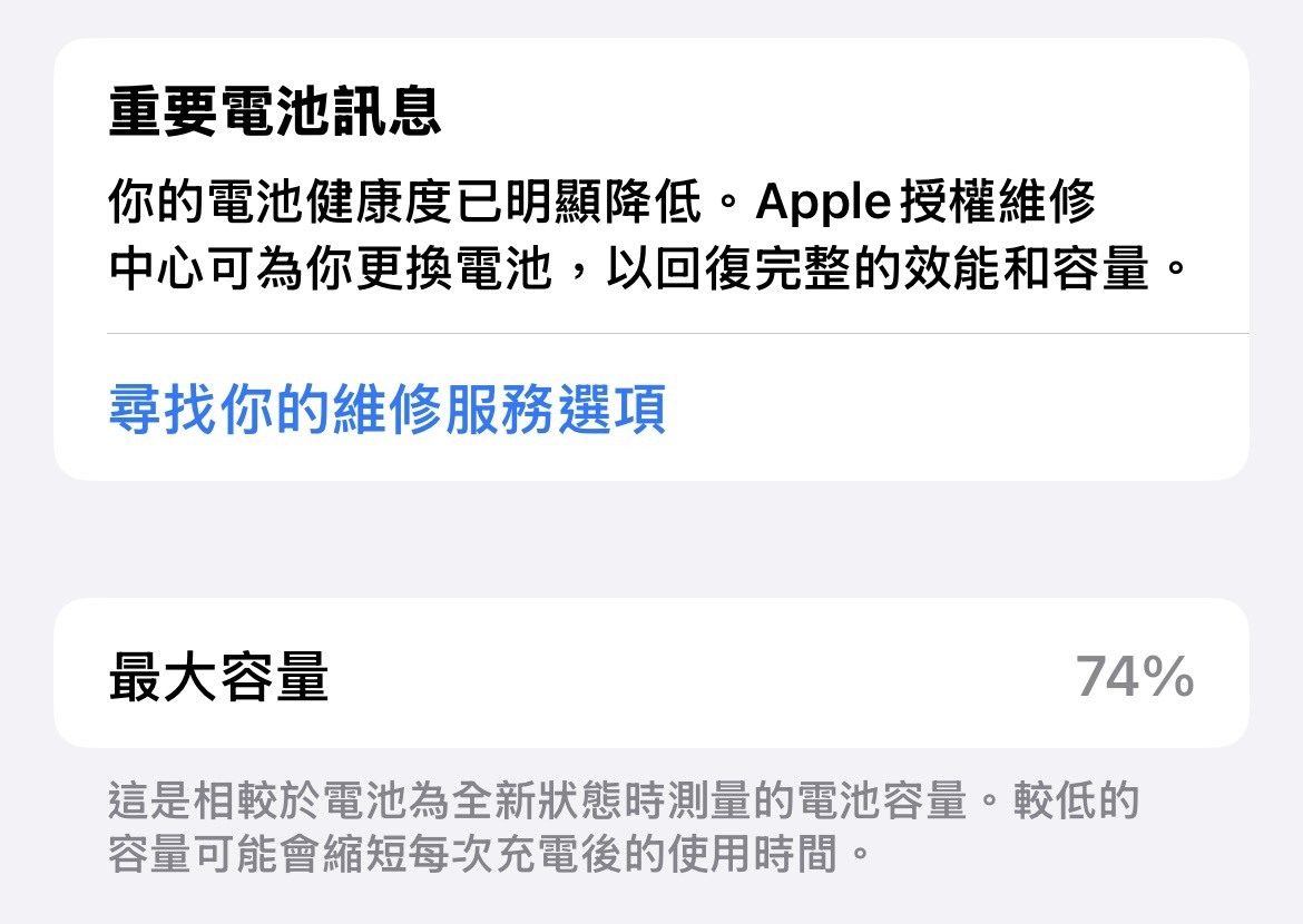電池健康度低於 80%,建議直接更換電池!同時避免邊用邊充,特別是在高溫環境下。