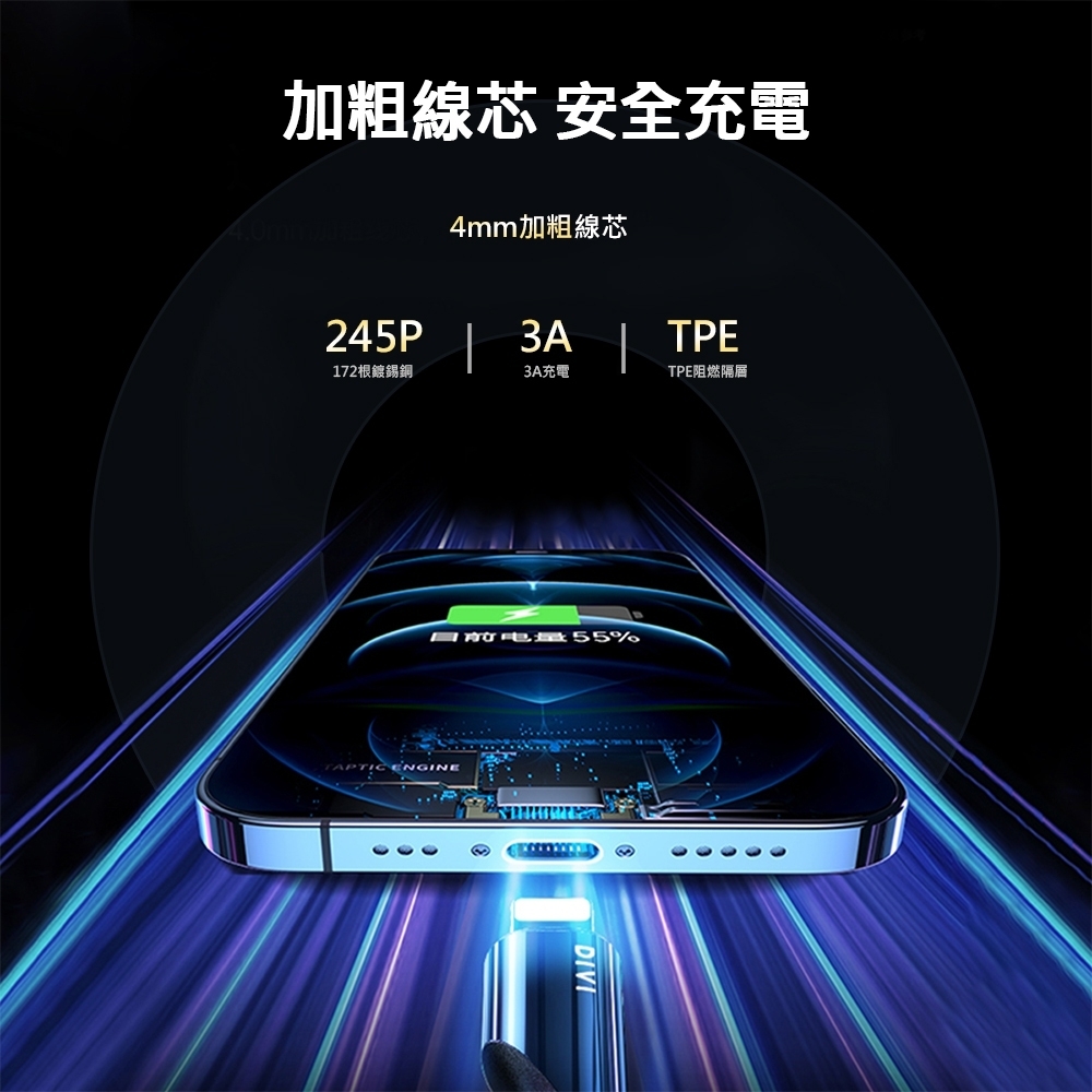 ✔4mm加粗線芯 快速充電