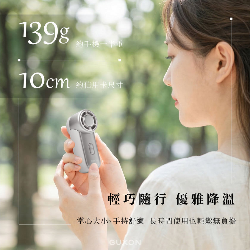 掌心大小的極致輕量化手持風扇,100檔風速調解,實現細膩風感;半導體製冷,給肌膚最冰涼的感受;體積小巧,續航力依然驚人,業界首創高速磁浮馬達,耐久運轉風力強勁!