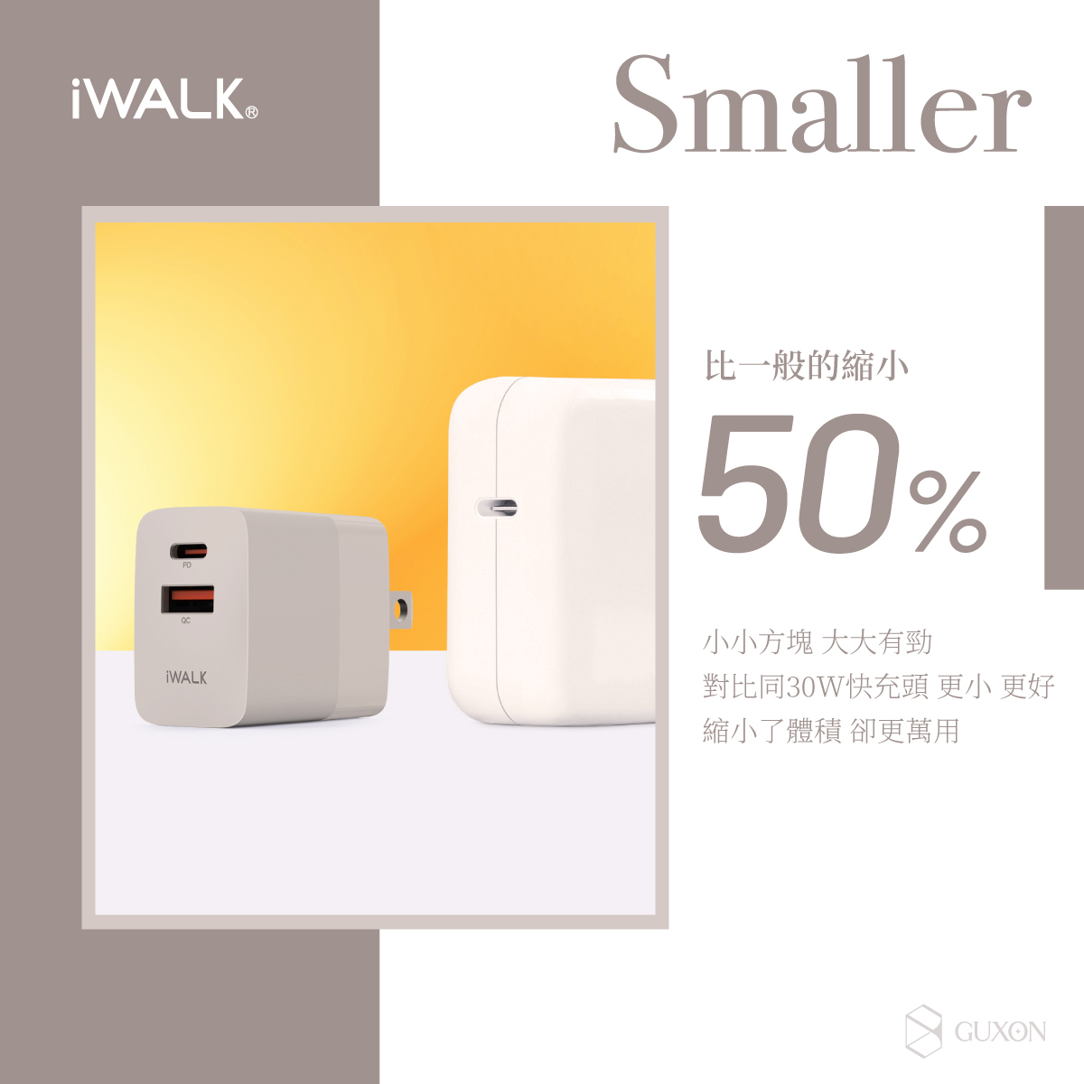 ‧雙孔迷你體積,比同類型充電頭小30%