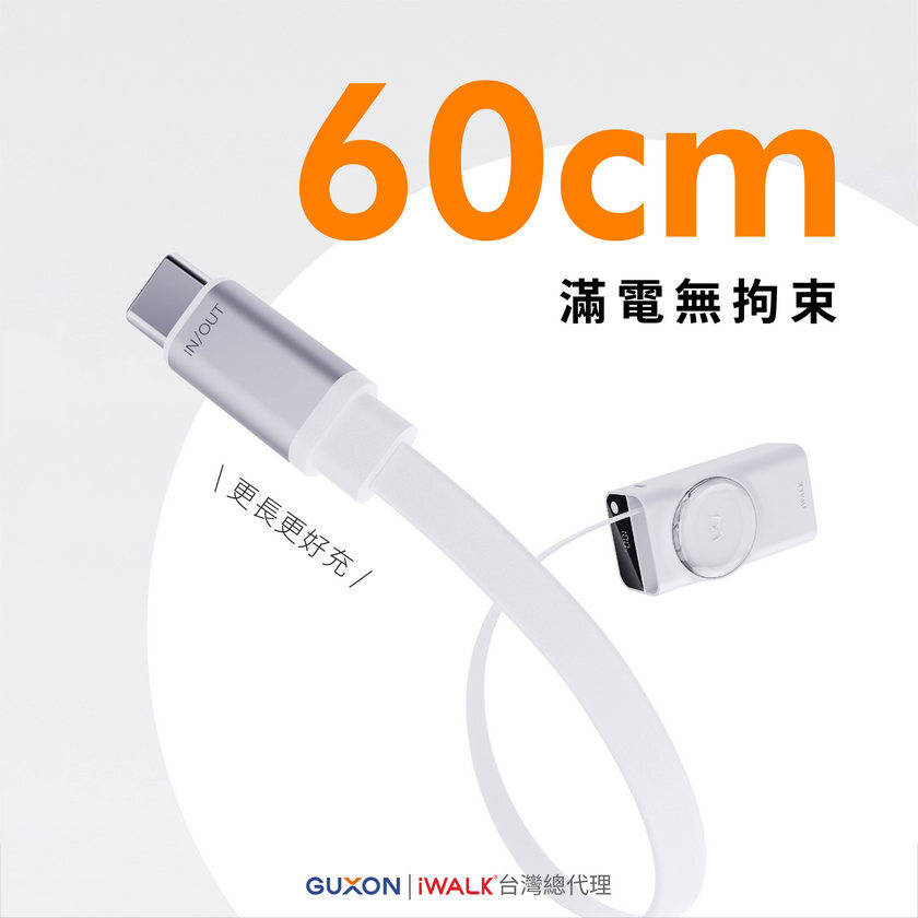iWALK Reel 拉拉線 結合 10000mAh 容量 與 30W PD 快充,內建可伸縮 Type-C 充電線,收納整齊不糾結。