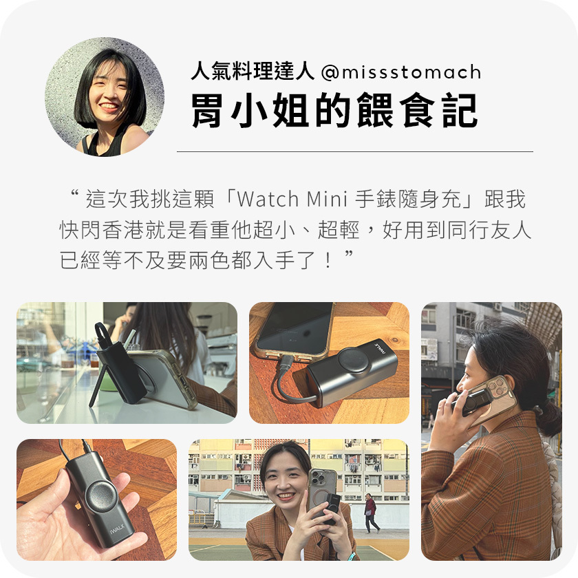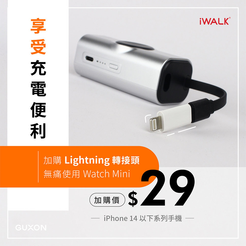 【告別繁瑣充電!】iWALK Watch Mini 手錶隨身充專為 Apple 用戶 設計,內建 USB-C 快充線 與 手錶磁吸充電,可同時為 iPhone 和 Apple Watch 充電,滿足你的行動電力需求,支援 15W PD 快充,隨時補電,省時高效!