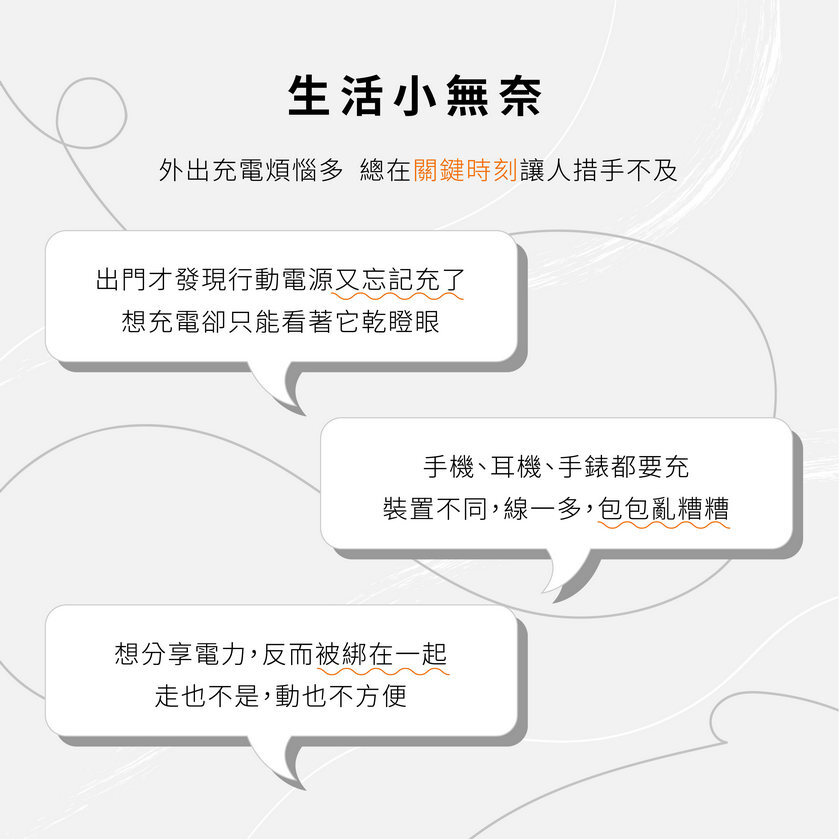 總容量13500mAh,擁有三倍續航力(母機:9000mah / 子機:4500mah),支援最高 PD 20W 快充功率,提供 Type-C、USB-A 雙孔接線輸出,充電更便利。