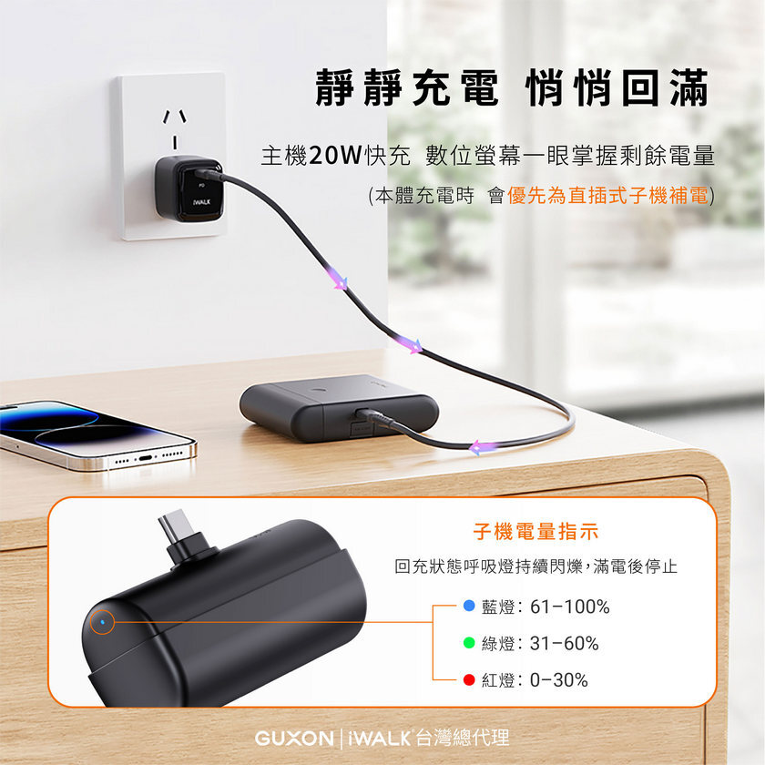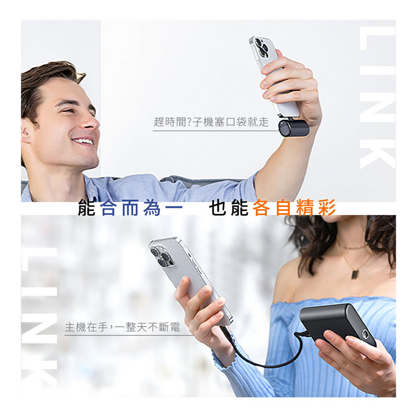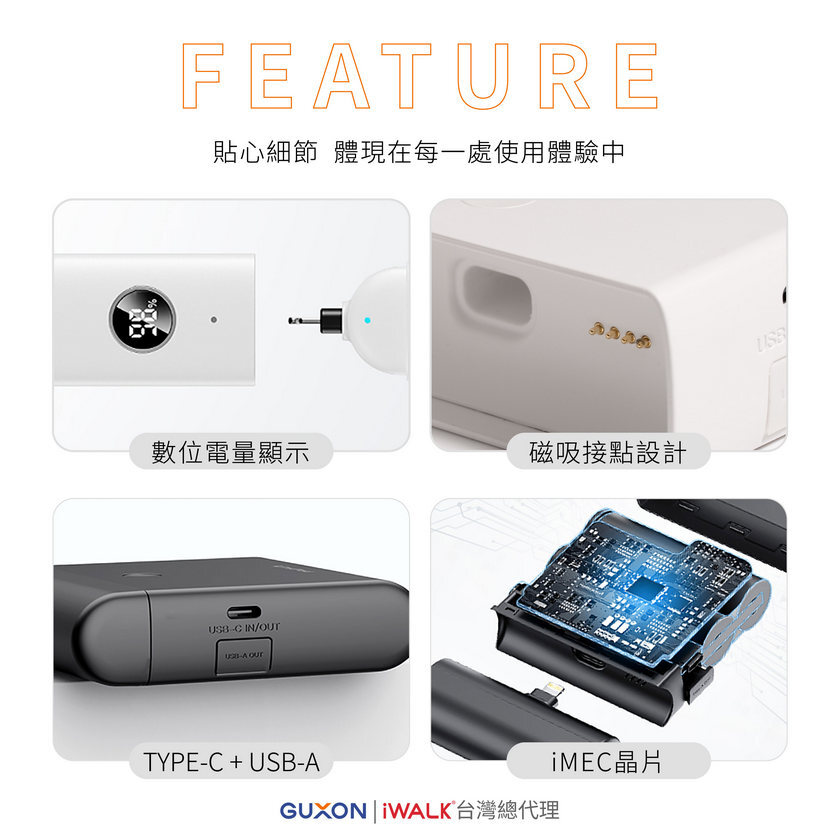 GUXON+IWALK 聯名款 LINK 二合一組合式口袋行動電源,首創組合式雙電源設計,母機帶小機概念,子機電源沒電時,可以透過母機幫子機回充,隨時讓你的口袋電源保持滿電狀態!