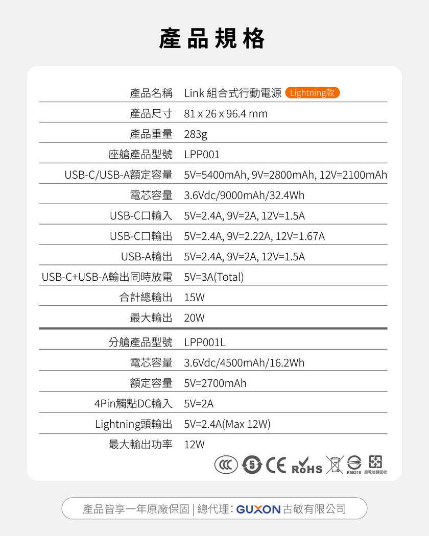 ※此為 LINK 行動電源子機,需有 LINK 組合式行動電源 才可使用,請勿單獨購買。