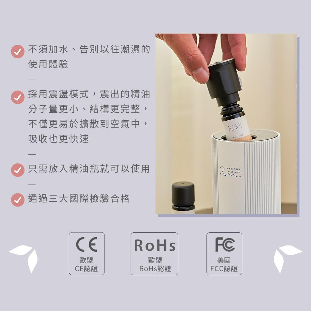 無需加水,讓最純淨的精油芳香在空氣中,也不怕潮濕