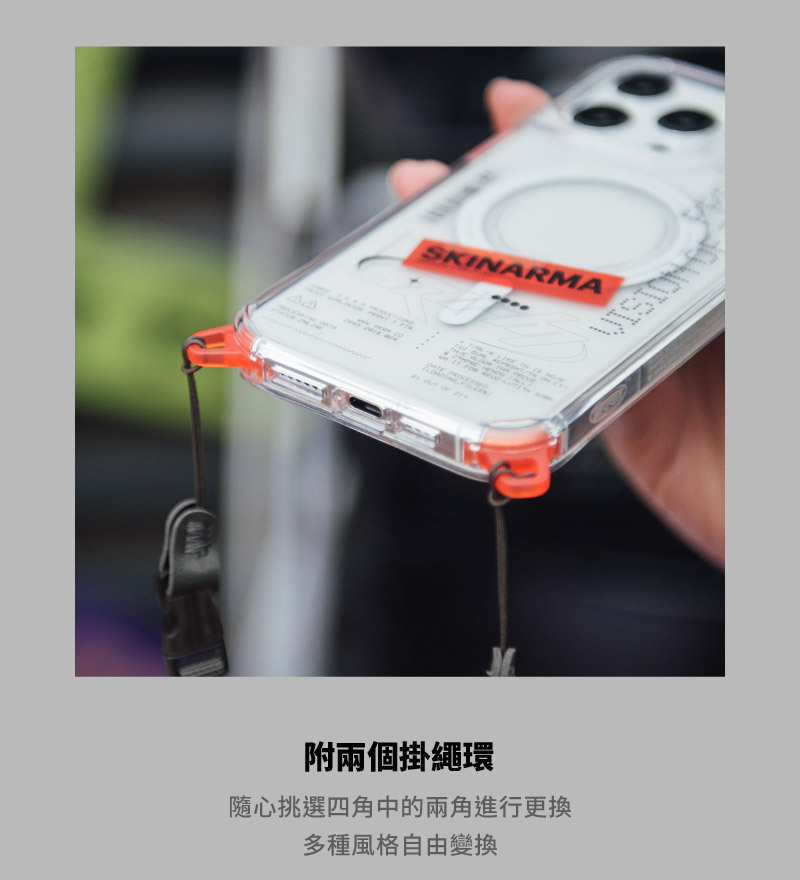 • 四角可更換掛繩孔(內附2個掛繩環)