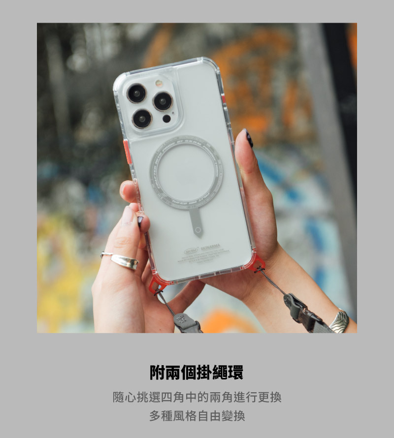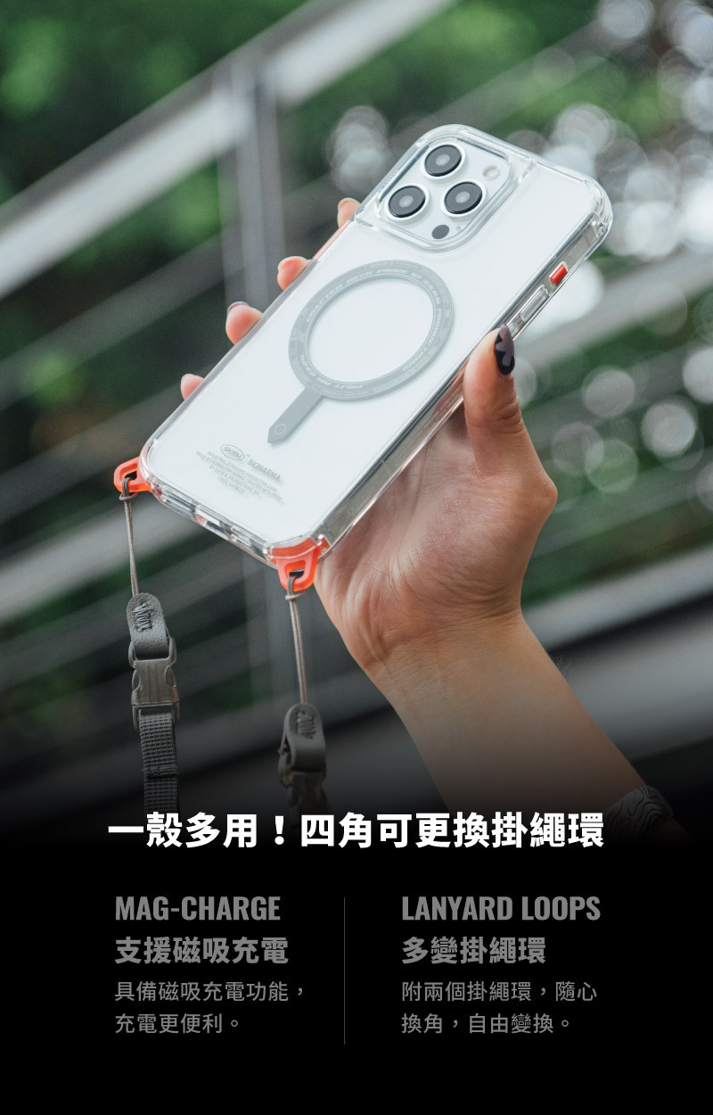 • 四角可更換掛繩孔(內附2個掛繩環)