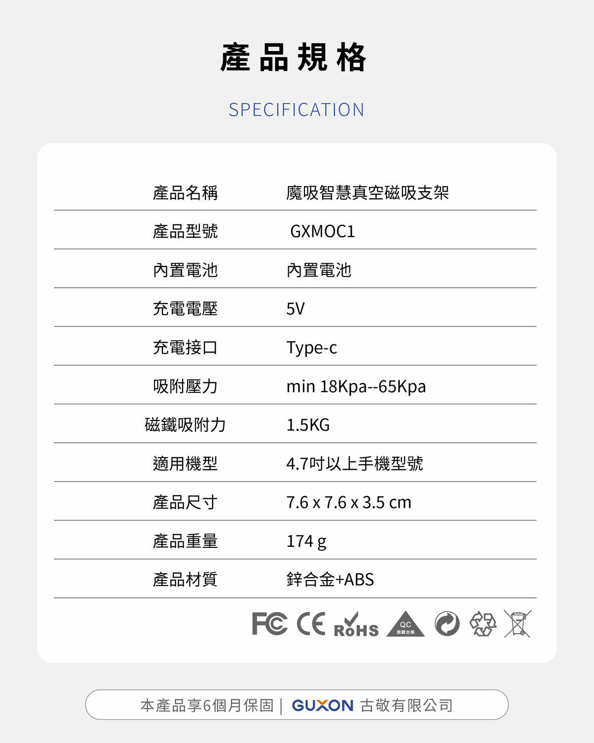 ▌65Kpa超強磁感應吸附,電動抽氣不滑落